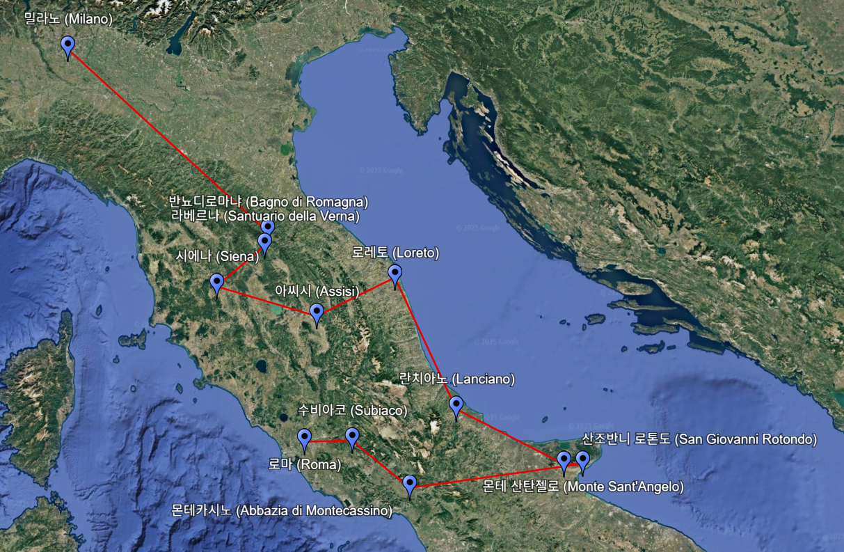 성 비오 성인의 도시 샨 죠반니 로톤도 이동 기념성당,무덤등 전일 순례