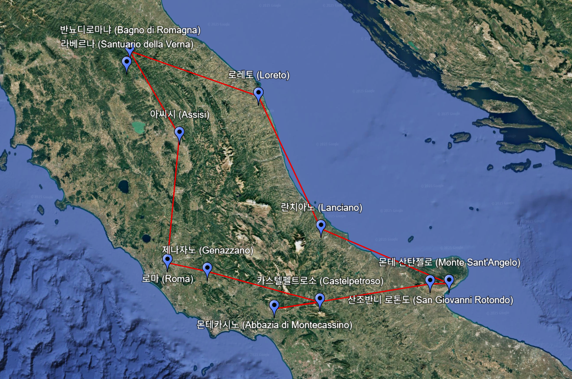 프란치스코 성인께서 오상을 받으신 라베르나로 이동